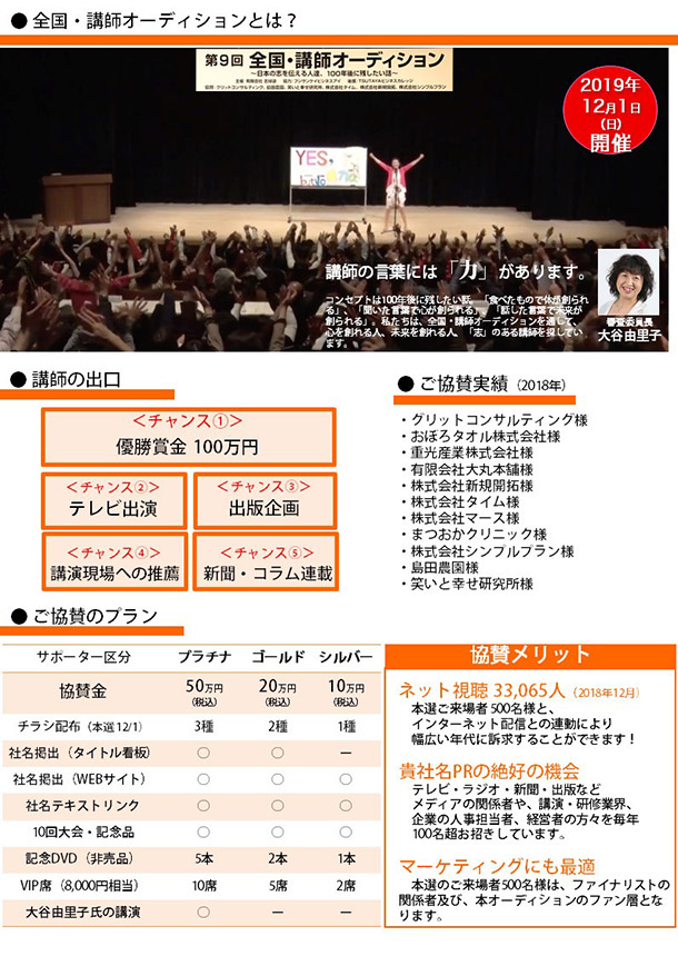 ◆【御礼】協賛企業・団体・サポーターの募集(2019年)